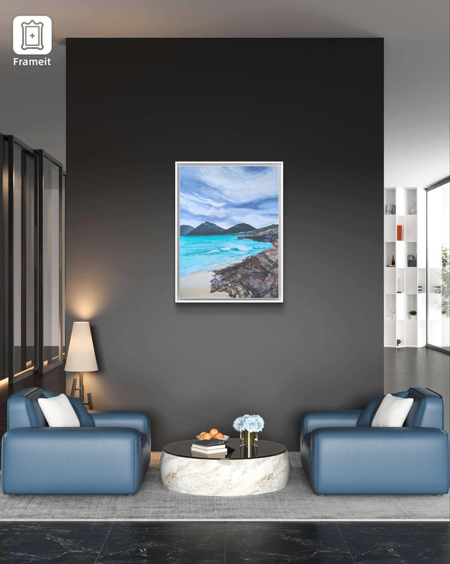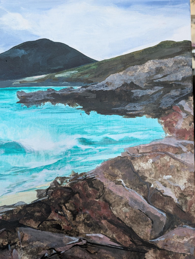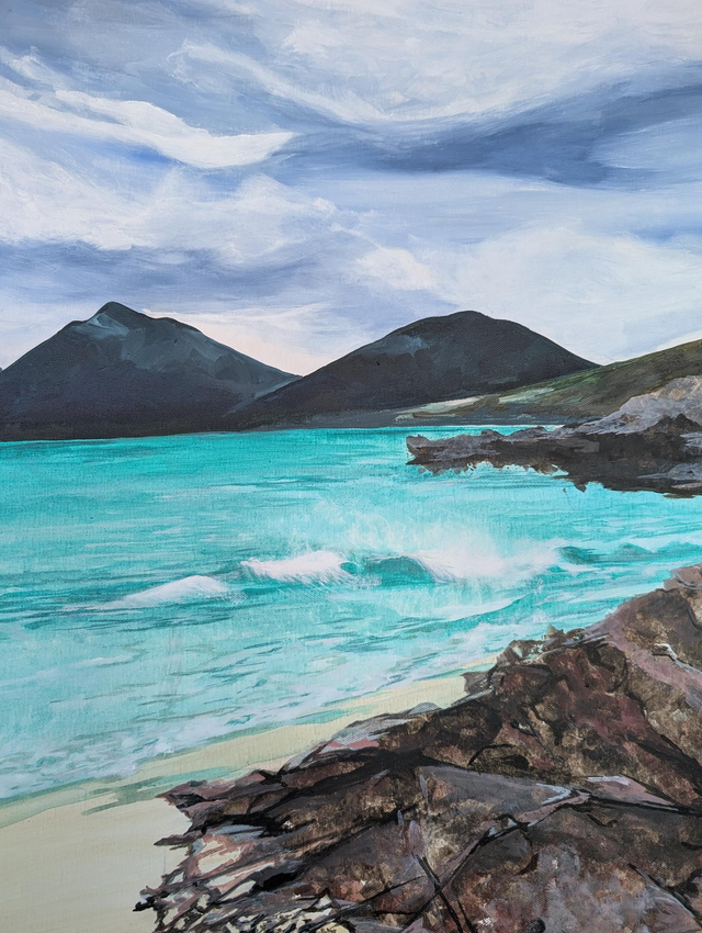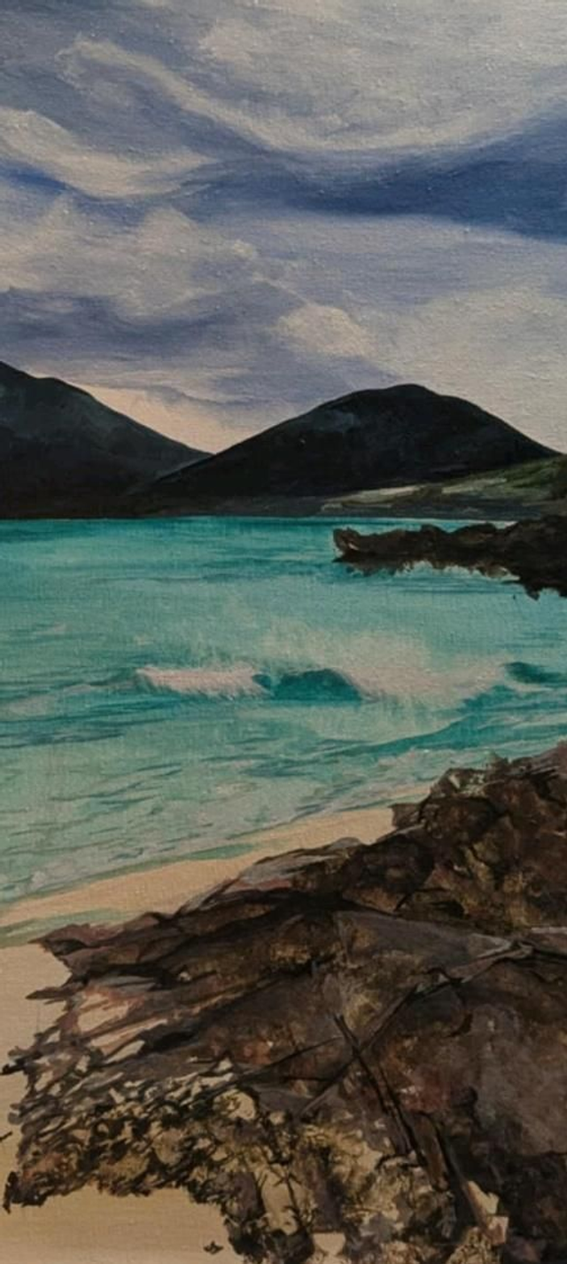 Original acrylic on canvas. A view from the rocks at Luskentyre beach looking over the hills. Created from my visit there in February. This can be shipped and comes framed or unframed.