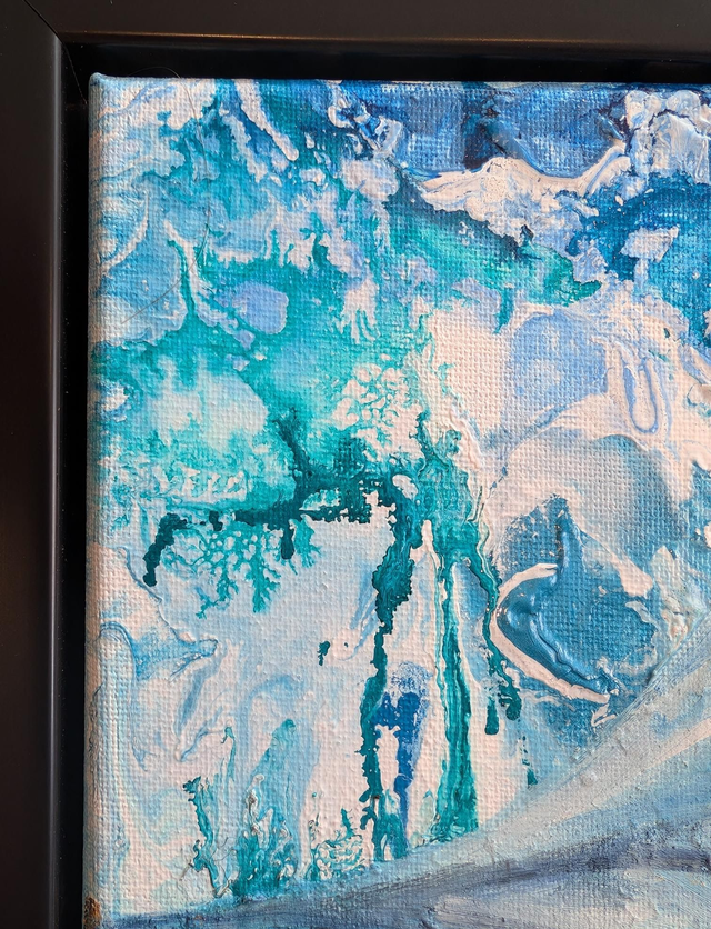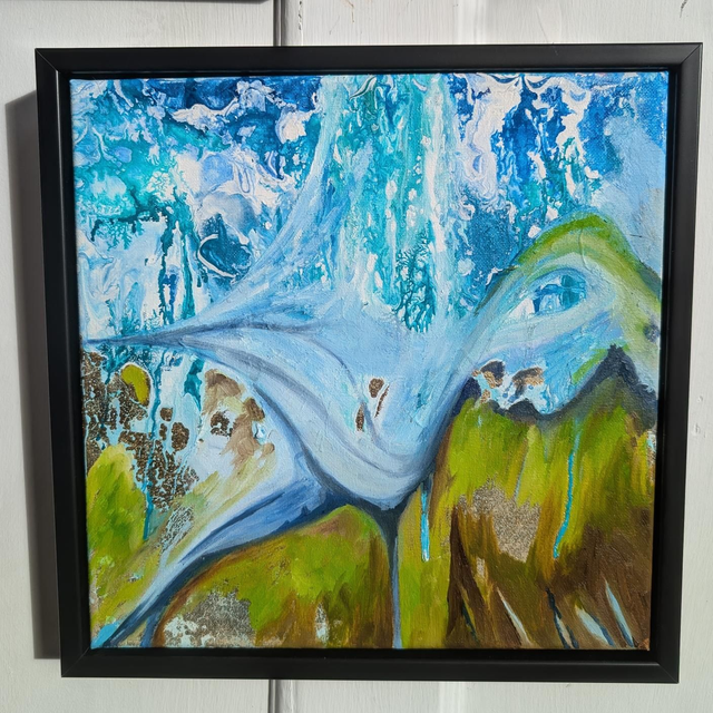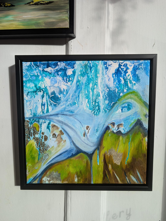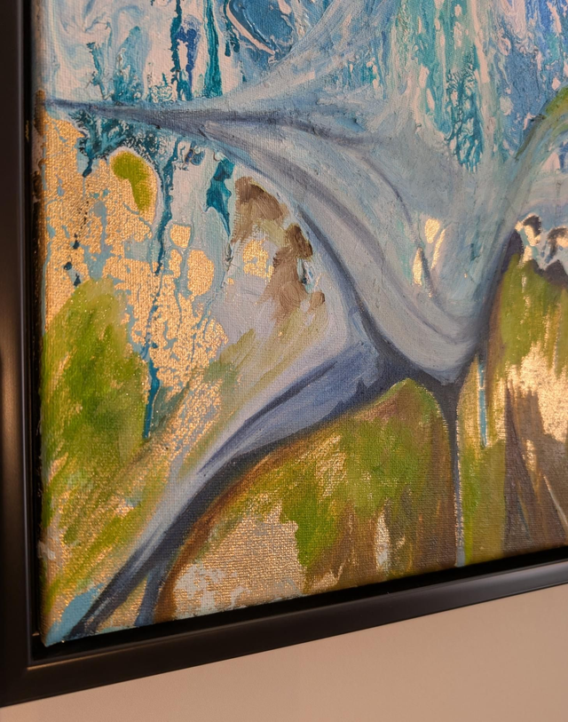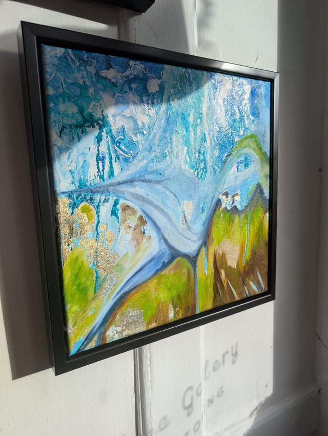 'As the tide washes away' Original acrylic, oils and gold leaf on canvas. Comes framed. 13" x 13"