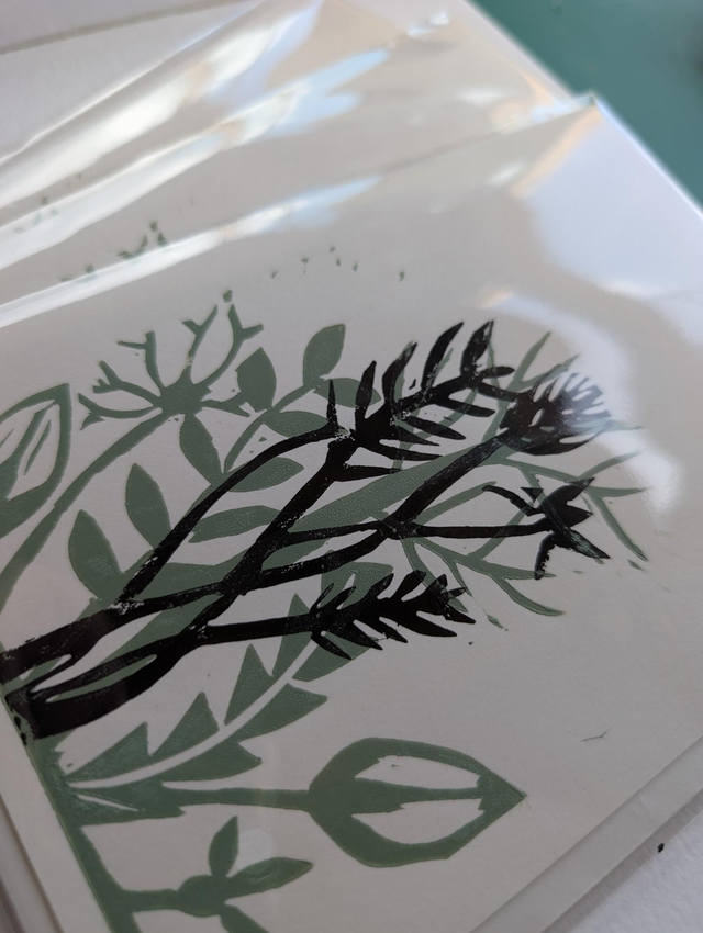 Hand printed Lino cut botanical card. Comes with envelope and blank inside.