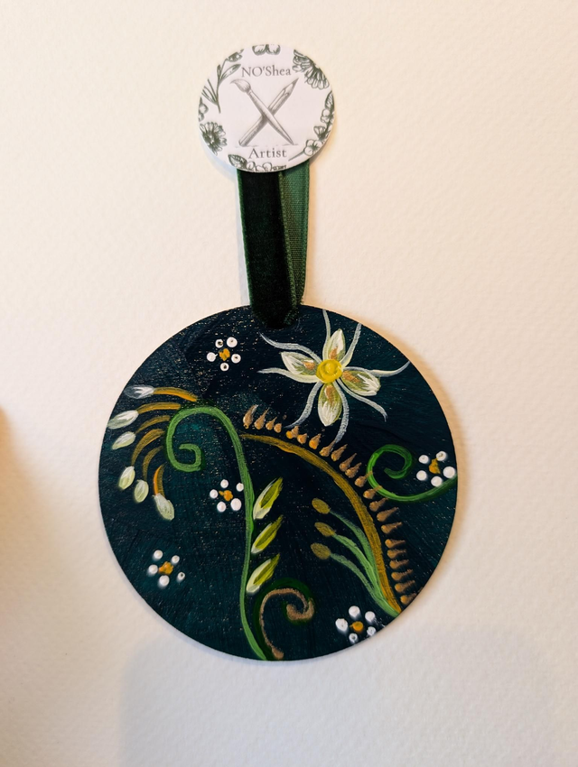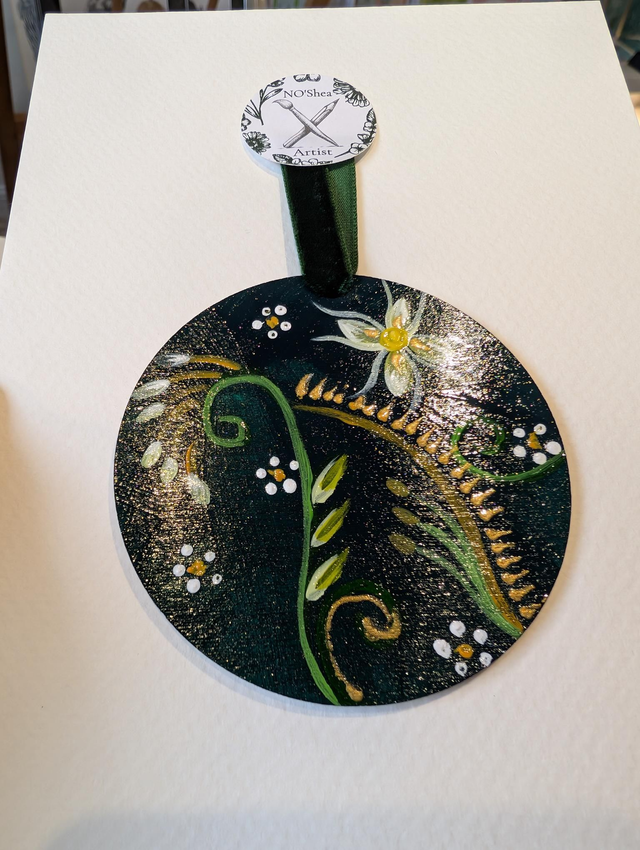 This hand painted wooden decoration is a one off. Painted in bright acrylica and varnished. It comes in a presentation bag. Makes a perfect gift.