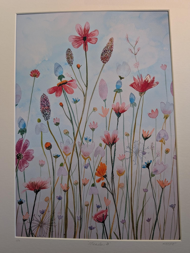 Original framed watercolour painting sized 20" x 28". One original available or comes as A4 mounted print or A3 Giclee mounted print. Delighted and delicate painting.