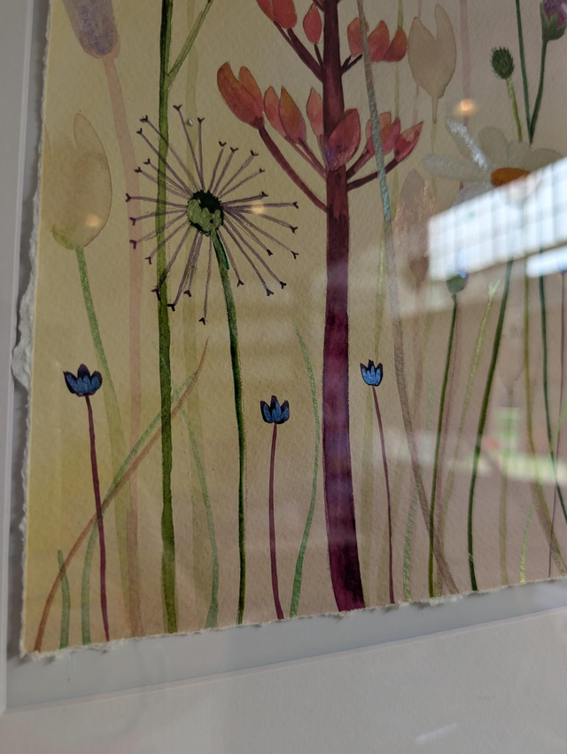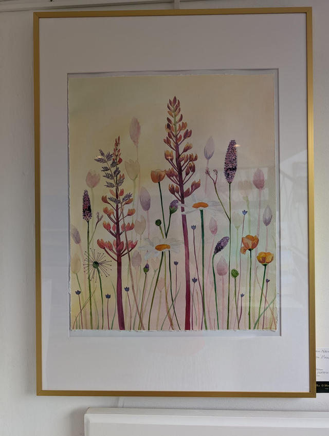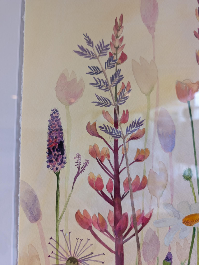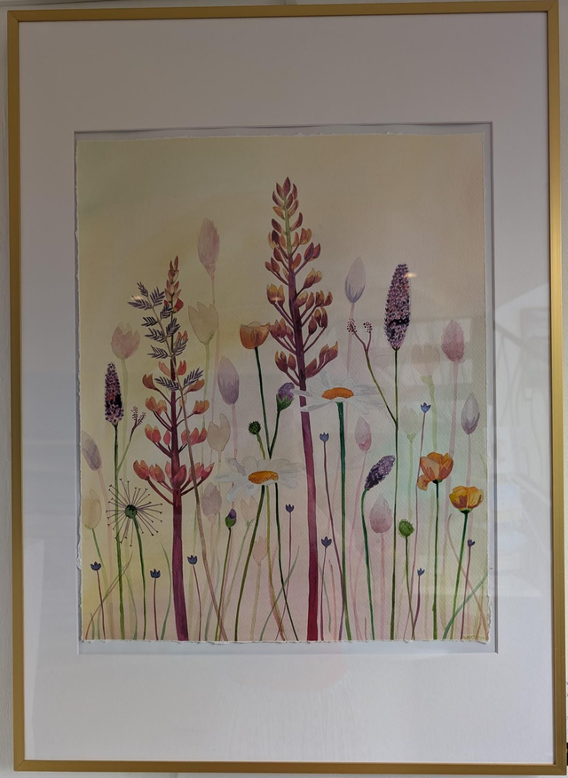 Beautiful original framed watercolour painting with metallic paint. A delicate piece yet bright and colourful. Only one available.