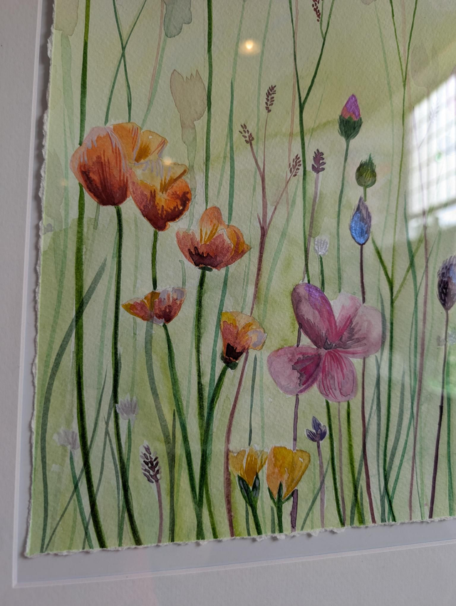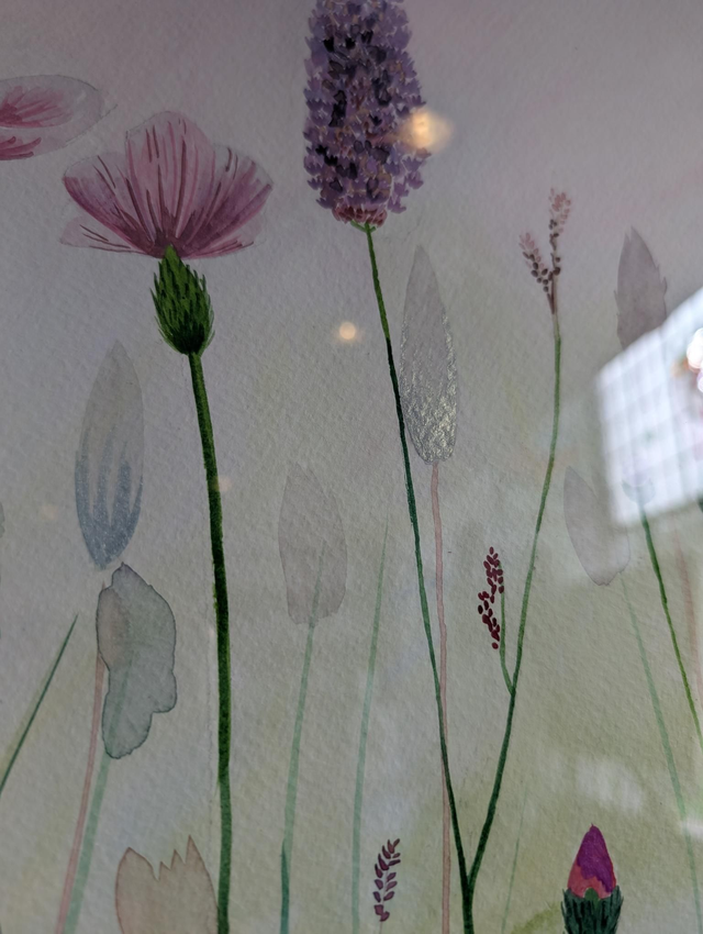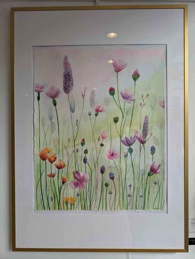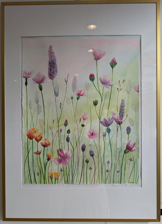 From my new series of watercolour metallics, capturing a meadow with a different perspective. Only one available, comes framed.